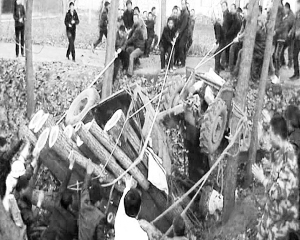 当日16时许,西华县消防大队官兵接到报警后火速赶到事故现场,发现一辆装满木料的四轮车侧翻在路沟内,车上3人都被埋压在木材下面,不断发出痛苦地呻吟声,情况十分危险。