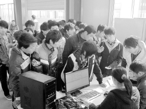 为确保项目按时投产所需员工, 西华县委、县政府在全市各县(市、区)人力资源市场设立招募中心,并在西华县城设立多个报名点,广泛招募员工。截至目前,富士康实训基地项目已招募员工1300余人。图为报名台前排满了应招人员。