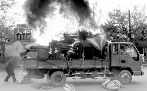 11月23日14时30分许,在周口市区中州大道北段,一辆满载货物的蓝色小型货车意外着火,由于车上载有氢气球等易然物品,大火瞬间吞噬了货车车厢(如图)。见此情景,路经此地的周口日报印务中心职工高华伟组织人员救援,并迅速从附近商铺里借来9个灭火器,一起对着货车车厢一阵狂喷。在众人的齐心协力下,半小时后大火被成功扑灭。据悉,该事故没有造成人员伤亡,货车着火原因正在调查中。