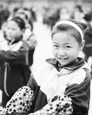 图② 11月29日,在四川省凉山彝族自治州布拖县补洛乡九年一贯制学校,8岁的二年级二班孤儿吉拖么史作在做广播体操。