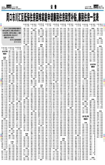 周口市川汇区低保住房困难家庭申请廉租住房租赁补贴、廉租住房一览表