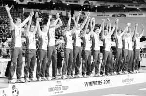 本报综合消息 12月4日,2011年男排世界杯在日本东京落幕,俄罗斯男排以3比2力挫波兰男排,时隔12年后重夺世界杯冠军,波兰队夺取亚军。意大利队3比1胜伊朗队,但巴西队以3比0完胜日本队,比分占优的巴西队以世界杯第三身份挺进伦敦。中国男排0比3负于阿根廷男排,11战10负1胜,积5分列世界杯第11名。