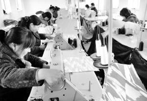 山东省文登市依托家纺产业优势,积极组织家纺骨干企业与乡镇、办事处对接合作,开展“家纺下乡”活动,提供直接放货、技术指导和产后服务。目前,文登市已建立农村家纺加工点4000余个,吸纳10万余农村妇女就业。新华社记者 郭绪雷 摄