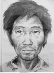 犯罪嫌疑人年龄45岁左右,男,身高1.73米上下,瘦高个,头发较长且乱,瘦长脸,上唇和下巴有稀疏胡须,肤色较黑,衣着较脏,周口东部口音。2011年春节前后在项城市新沙河大桥周边活动,以捡拾垃圾为生。每天夜晚和凌晨有大声吆喝习惯,吆喝内容近似:“老天爷,你不公平……”或“王天×,……”辱骂语言。嫌疑人有手工卷烟抽烟习惯,有烟瘾,会烧水做饭。
