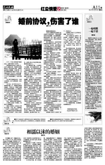 如果婚姻真的可以用这种“签字画押”的婚前协议来维持,来巩固,不能不说是婚姻的一种悲哀,是对真爱的一种伤害,一种亵渎,一种侮辱。