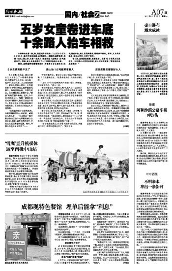 五岁女童卷进车底