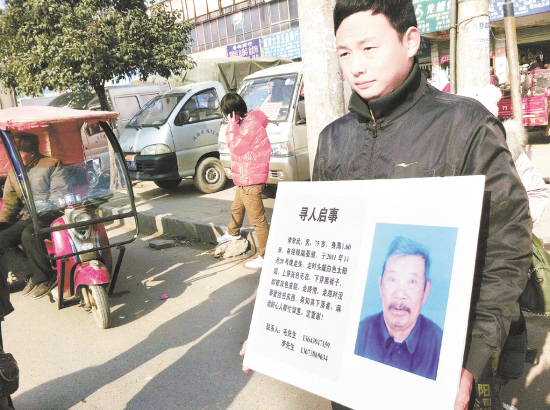 男子街头举牌苦寻走失爷爷 详见A03版 晚报记者 田松平 摄