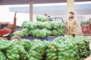 12月21日,记者在西华县红花镇华龙农贸市场看到:到处堆放着装好袋的萝卜和白菜,一车一车的萝卜和白菜不停地运往市场,但运出的寥寥无几。