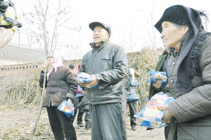 当日上午,29位老人已坐在敬老院内的空地上晒太阳,盛建军带领学校内的“留守儿童”走到老人身边,给老人们戴上精心挑选的皮帽子,送去床单等生活用品,这让老人们喜出望外。当“留守儿童”们把一袋袋饱含深情的冬至饺子,送到老人手中时,不少老人发出赞许声:“想得可真周到,冬至还不忘给我们这些老人送饺子!”