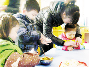 当日上午,敬老院里不时传来阵阵欢声笑语。志愿者们一到敬老院,就走进厨房,把事先准备好的饺子馅拿出来,有说有笑地围坐在案桌前,有的擀饺子皮,有的包饺子(如图)。