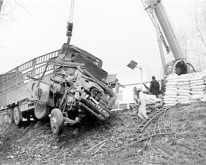 记者接报后前往事发现场,发现该路段路面上确实有些湿滑,过往车辆都行驶得小心翼翼。在两辆侧翻路边的货车中,有一辆是湖北牌照的货车,车上装有20吨化肥(上图)。该车司机告诉记者:“今天早上6时许,天还黑着,我开车经过该路段时,突然发现前面有辆车,我赶紧刹车,谁知路面结了一层薄冰,车子刹不住,结果就侧翻在了路上。”据悉,另一辆侧翻货车事故发生的原因也是如此。