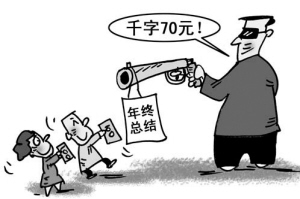 记者近日在网上发现,庞大的年终总结需求使各类“网上代写”订制服务悄然走红,生意异常火爆。记者随机调查发现,在网络复制和微博的年代,写几千字的文章已经成为一件难事,网上继而也出现“千字70元”的年终总结枪手。卖家不仅可以根据购买者的职业量身写作,还保证绝对原创,免费修改。伴随火爆的代写业务,隐私泄露、诚信危机等忧虑也随之而生。 新华社发
