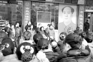 12月26日,在周口市区某药店门前,众多市民聚集在一起,共同纪念毛泽东诞辰118周年。