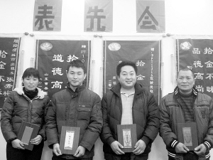 掌声,笑容,其乐融融。“赵攀峰,今年先后拾到乘客遗落的两个钱包,包内共有现金7000多元……奖励50元!”现场,主持人每念到受表彰出租车司机的名字,大家就纷纷送上热烈的掌声。“不该得的财物咱不能要,得想法儿还给乘客!”个头不高、脸上始终挂着笑容的好的哥赵攀峰这番朴实的话语,让在场记者心里也暖暖的。