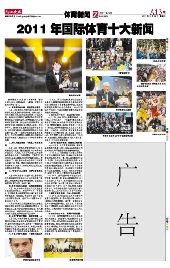 新华网北京12月27日体育专电 新华社评出2011年国际体育十大新闻(按事件发生时间为序)如下:
