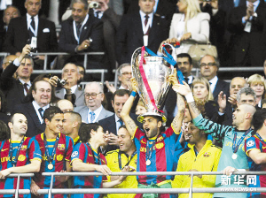 5月28日,被誉为“宇宙队”的巴塞罗那队在伦敦的温布利球场以3:1力压英超豪门曼联队,捧起欧洲足球冠军联赛奖杯。这也是巴塞罗那队第四次登上欧洲之巅。