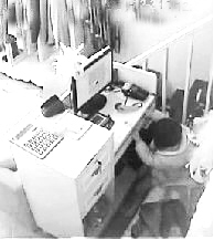 她首先翻了放在收银台后的衣服的口袋,里面并没有东西。这时,她很快发现店主放在收银台柜中键盘的夹缝里,有个苹果手机。她迅速拿了手机,放进口袋。
