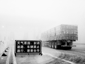 12月28日,由于大雾弥漫,道路封闭,宁洛高速项城出口处,部分车辆出现滞留。晚报记者 金月全 摄
