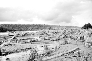 2011年12月30日,在菲律宾南部棉兰老岛卡加延.德奥罗市,卡加延.德奥罗河旁的一个村庄被热带风暴“天鹰”带来的洪水冲得荡然无存。