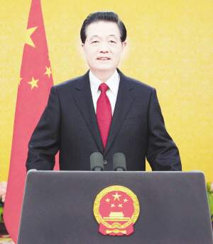 新华社北京12月31日电 新年前夕,国家主席胡锦涛通过中国国际广播电台、中央人民广播电台、中央电视台,发表了题为《共同促进世界和平与发展》的新年贺词。全文如下:
