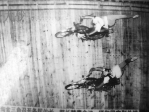 飞檐走壁,通常用来形容人身怀绝技,身体轻捷,能在房檐和墙壁上行走如飞,可这只出现在文学作品中,现实生活中真正能做到“飞檐走壁”的人可谓少之又少。但是,在我市杂技界,就有这样一个特殊的团体——她们身怀“飞车”绝技,能在一个高6米、直径 14 米的大木桶内驾驶汽车、摩托车飞速行驶,场面之惊险,速度之快,让人叹为观止,比起“飞檐走壁”有过之而无不及。这个团体就是周口东新区文昌办事处郭埠口村的杜氏家族。30余年来,杜家人凭借精湛的“飞车”特技,走南闯北,征服了观众们挑剔的目光。
