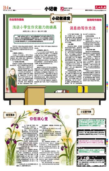 积累是作文的基础,阅读和背诵是积累的有效方法。我们可以根据所学课文进行同步阅读,比如六年级学生在学习《永远记住你老师》时,可以阅读海伦·凯勒的《假如给我三天光明》;学习《匆匆》时,可以阅读朱自清散文集《背影》等。阅读的同时,书中的好词好句可以抄写在笔记本上,抽时间背下来。在阅读和背诵的过程中,我们积累了大量的词汇和故事,汲取了健康的思想,受到了美的熏陶,开阔了视野,活跃了思维,写作时就会文思泉涌,妙语如珠。