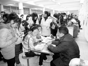 近日,周口幼师举办2012届春毕业生就业洽谈会。来自北京、广州等地的266家用人单位,为毕业生提供了1800多个就业岗位,充分满足了毕业生就业需求。图为洽谈会现场。 (胡银堂 梁永亮 摄)