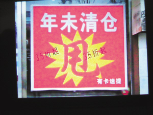 本报讯 1月1日,小记者在市区七一路一品牌店前看到一促销告示(如图),感到十分不解。“年未清仓”,不知为何?应是“年末清仓”之意吧?