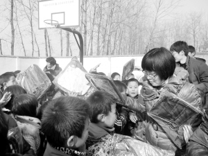 1月7日,“温暖冬天”爱心行动组又先后为郸城县宜路镇段庄小学的178名学生、沈丘县赵德营镇刘庄希望小学的100多名留守儿童送去了学习用品和保暖用品。
