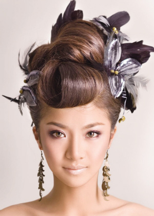 春帘式长发是为新婚女子而设计的,配上新颖的礼服,戴上首饰点缀,显现出新娘的清丽气质。