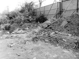 记者宋风核实报道:1月8日下午,记者前往中州大道与建设路交叉口,四方药业游园的所在地时,看到游园已经被人用蓝色铁板筑成的围墙隔离起来,围墙内,河南省广夏建设工程有限公司承建的北辰桂园住宅项目正在施工中,昔日的游园绿地已经被眼前的大片黄土和树木残枝所取代(上图)。