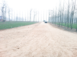 李灵希望小学新校区门口原来是一条土路,每逢下雨,学生们都要踩着泥泞上学放学。现在这条不足100米长的土路修成了砖铺路(如图),道路状况有所改善。刘钦文得知此情况后,通过市慈善总会向校长李灵表达了自己的意愿,“想把这条路修成水泥路”。