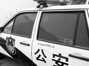 ▲在周口一派出所门口,一辆警车上被人写上“买车”的“小广告”,让人一看人忍俊不禁。