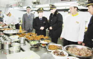 1月13日,市卫生监督处执法人员在一家饭店检查厨房卫生。春节将至,市卫生监督部门对辖区内春节期间营业的大中型餐饮服务单位的“年夜饭”菜单、食品原料采购、餐具消毒和加工场所的卫生状况进行全方位检查,让市民的“年夜饭”吃得更加安心、放心。 晚报见习记者 臧秋花 摄