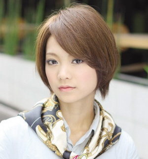 服帖柔顺的发型显得爽朗清新,斜刘海修剪出层次更显脸型。