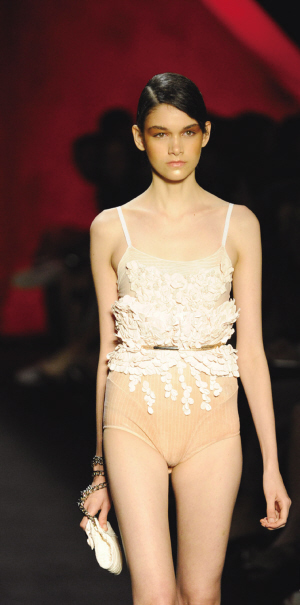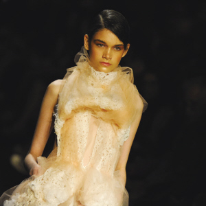 模特在巴西里约热内卢时装周上展示设计师Melk Z-Da的作品。 当日,里约2012冬季时装周进入第二天,共有四组设计师作品登台亮相。Melk Z-Da展示了一组充满梦幻气息的作品,成为当天的亮点。(麻淼)
