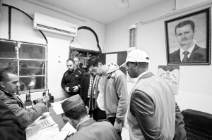 1月15日,在叙利亚大马士革阿德拉监狱,一名阿盟观察团成员查看即将被释放的在押人员办理手续。