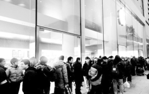 也正是因为如此,在众多普通消费者看来,和动辄上万甚至数十万元的名表、名包相比,一部苹果Iphone4S的价格虽然最低也要近五千元,但却并不是高不可攀的天价。更重要的是,对于众多热衷奢侈品又无力消费的人来说,买一部Iphone4S,是他们与“富豪”群体站在同一起点,得到心理满足的唯一机会。也正是在这种心理的驱使下,即便有黄牛加价转卖,依然有大批消费者心甘情愿,只为能早一天用上最新款的Iphone。直到13日,头戴小帽、臂缠丝巾、大规模有组织的黄牛党,将这种狂欢推到了顶峰。