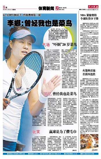 李娜:曾经我也是菜鸟62分钟吓倒对手,晋级澳网第三轮 “吓倒”20岁菜鸟气场 曾经我也是菜鸟回忆 赢球是为了攒毛巾玩笑