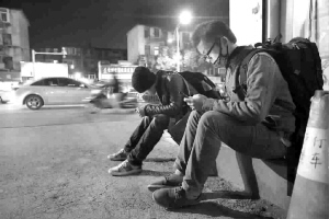 1月16日,行程第3天,晚上8时许,李森林和袁辉进入南通市区。记者见到他们时,二人正坐在路边的水泥台阶上休息,各自埋头刷手机屏幕,更新微博。