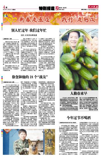 春节本是个团圆的节日,因为走不开,徐奎说这几年春节他为没有回家与父母团聚深感内疚。“谁也不知道什么时候需要出现场,说走就走了,没办法,这里离不开人。”徐奎说,他去年大年三十接到命令出警后,直到4天后才回来。今年春节相对平安,还没出过警,但他还是时刻处于待命状态。