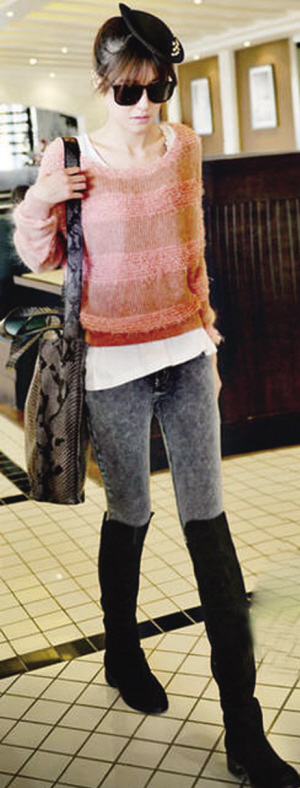 一款个性时尚的潮物针织衫搭配,搭配其实超简单的哦!你可以再内搭配上一款长款的吊带,内长外短也是很时尚的一种 搭配技巧哦!