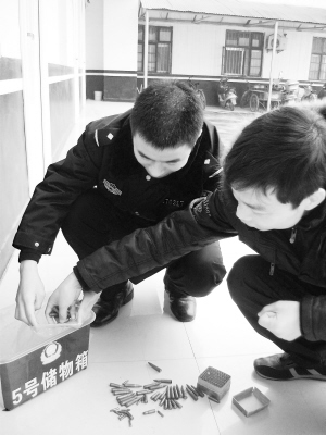 经民警清点(上图),邵先生主动上交的共有雷管100枚,子弹58发,整体完好,目前治安大队已对雷管作妥善处理。