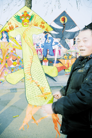 每逢过年,民间素有放风筝祈福的习俗。昨天,在周口市区滨河公园,双目圆睁、威风凛凛的龙风筝出现在风筝商贩的摊子上。这些龙风筝有大有小,形态各异,栩栩如生,十分精致。许多市民纷纷购买龙风筝,希望能在龙年伊始讨个好彩头。晚报记者 朱海龙 摄