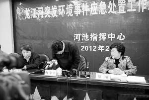 “近日来,龙江河突发环境事件引起广泛关注,严重影响沿江群众特别是柳州等下游群众的生活生产。对此,我谨代表河池市人民政府诚恳接受社会公众的批评,并向龙江下游群众和社会公众表示最真诚的道歉!” 2月1日下午,在河池市龙江河突发环境事件应急处置工作新闻发布会上,河池市市长何辛幸说完这番话,深深地鞠了一躬。