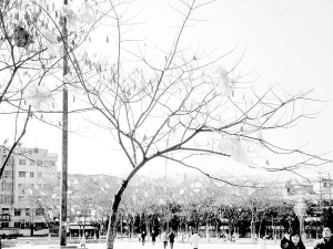 2月7日,项城中心广场的树上的挂着不少孔明灯“尸体”。