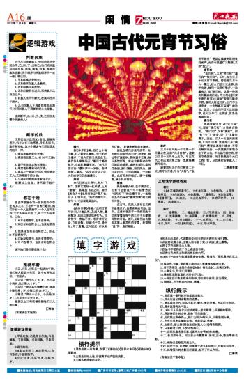 上期填字游戏答案