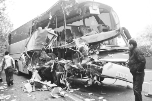 当日零时许,广西泉南高速南宁与桂林方向G72线1236公里处,一满载乘客的大客车与停在路边维修的大货车追尾,导致4人死亡,数十人受伤。新华社发