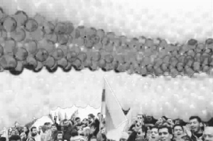 叙利亚民众手举由三色气球组成的俄国旗图案,欢迎俄外长到访。 新华社发
