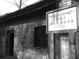 日前,记者前往刘大庄进行采访。刘大庄位于王皮溜镇东南1.5公里处。在鹿邑县党史办有关负责人陪同下,记者走进刘大庄村内的行政村村室,在坐北朝南的村室大门口西侧,有3间青砖瓦房,这就是现存的司令部办公室和彭雪枫司令的住室。在当时,刘大庄虽属停军歇马的地方,却是游击支队东进的后方,有着特殊战略作用。